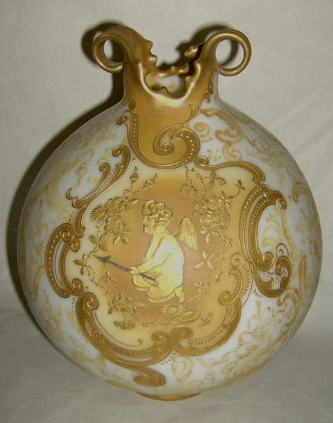 Crown Milano is the company name for a line of glass products made by Mount Washington Glass. Any dealer or collector can help you identify your piece as Crown Milano or something else. A lot of Crown Milano pieces have silver incorporated into them. You can also find raised areas that are applied ornamentations like buttons or beads. The actual color of Crown Milano ranges from something very close to white, to creams, pinks, and beiges. Delicate handles and lots of gold work are signatures of a Crown Milano piece. The designs were used across several popular shapes and forms. Expect to see more than just vases. Also of note, Dresden Decorated, Rich Decorated, and Ivory Decorated are other company names for Crown Milano.